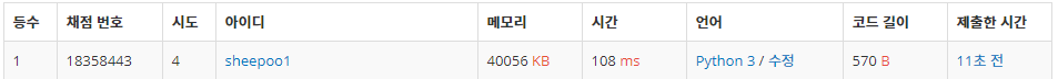 파이썬으로 푼 사람이 많지는 않지만 1등을 해보는 날이 오다니..